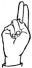 На ћирилици написано НИКОДИЈЕ КРНЧЕВИЋ састоји се из 16 слова [?]. Исписано ћириличном једноручном азбуком за глувонеме: